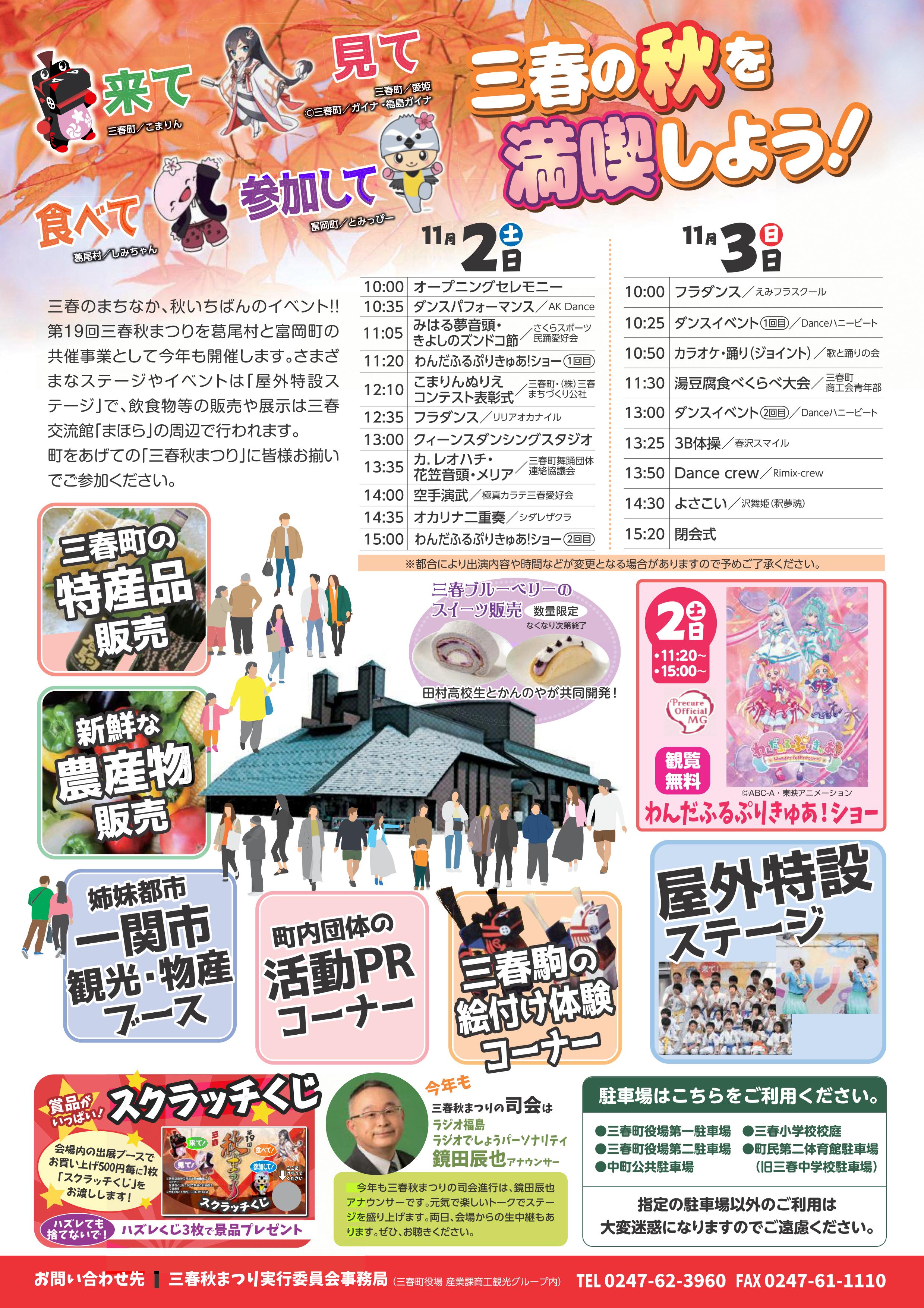 11月1日、2日は「三春 秋祭り」が開催されます。
